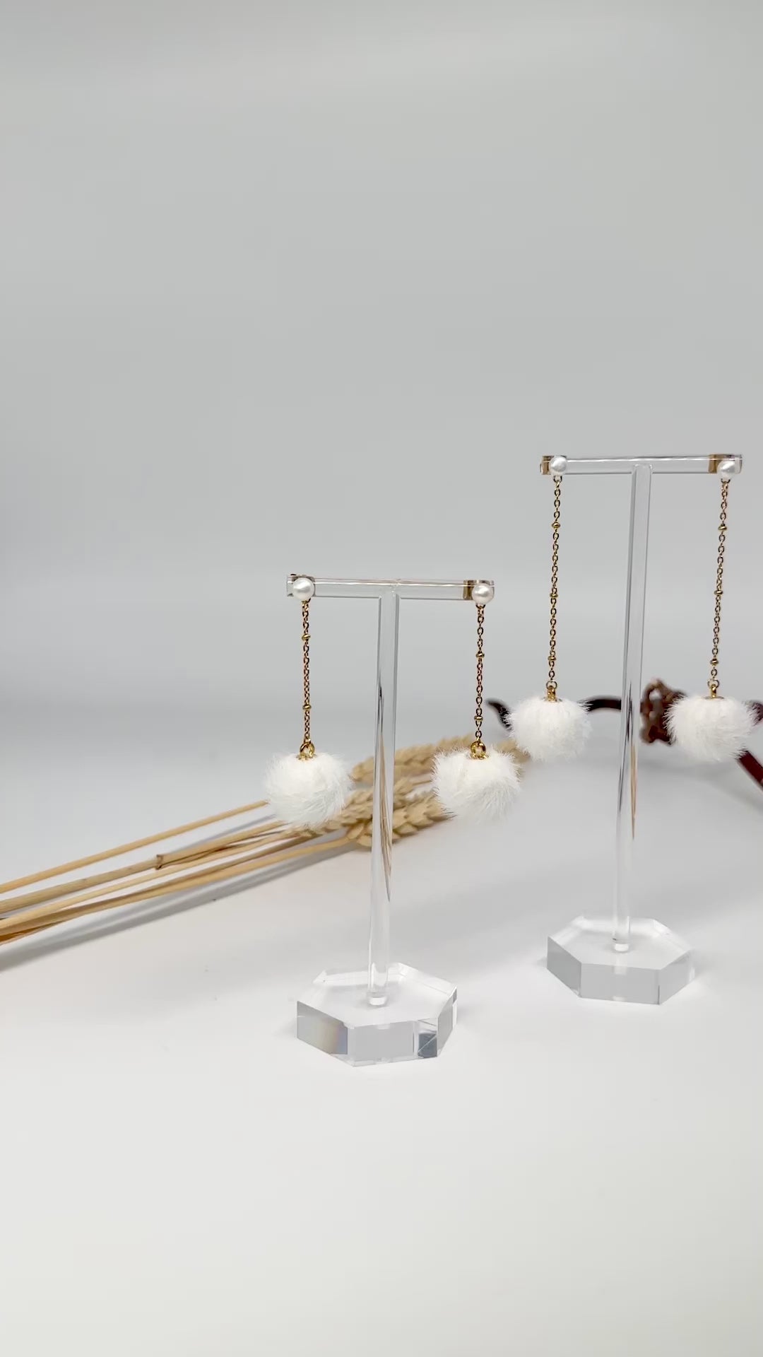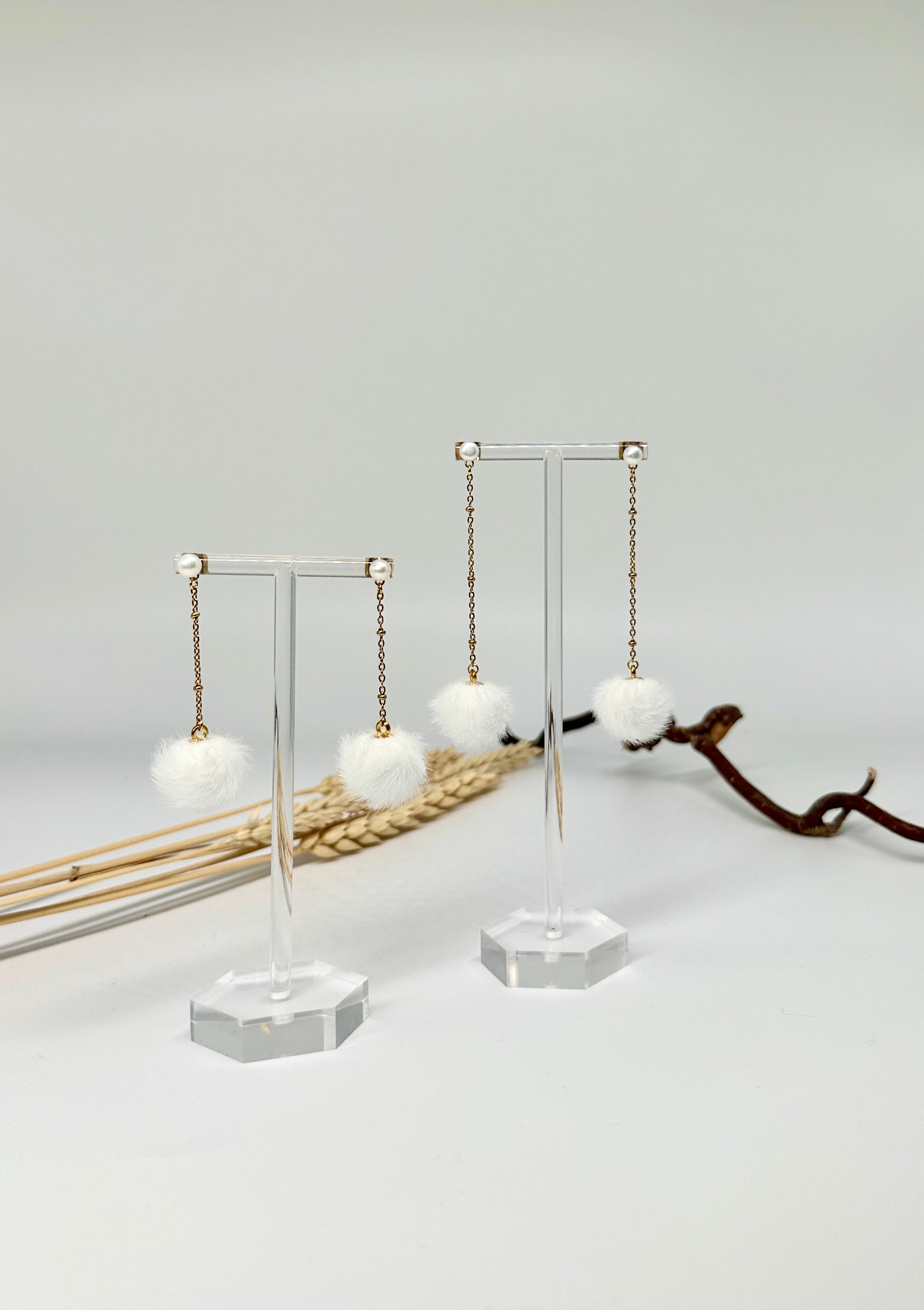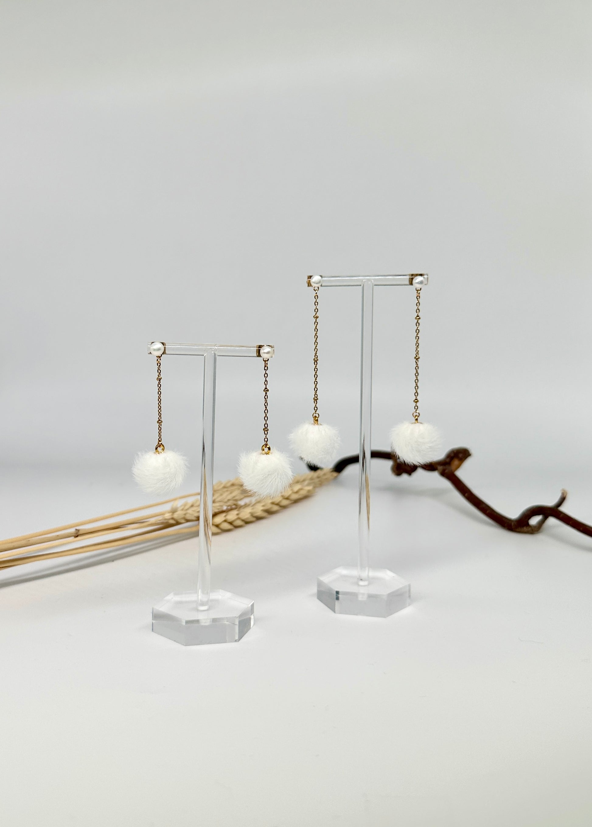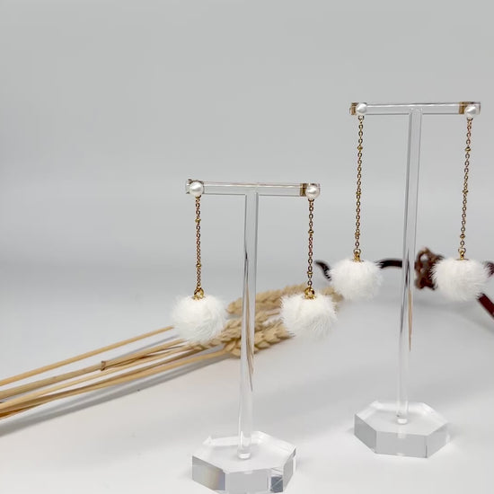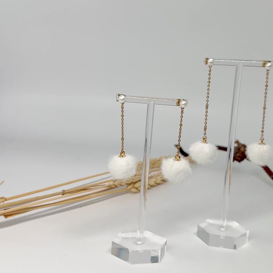 Plüsch Ohrringe mit Pompons, Flauschige Ohrringe, Ohrringe mit kleinen Bommel,