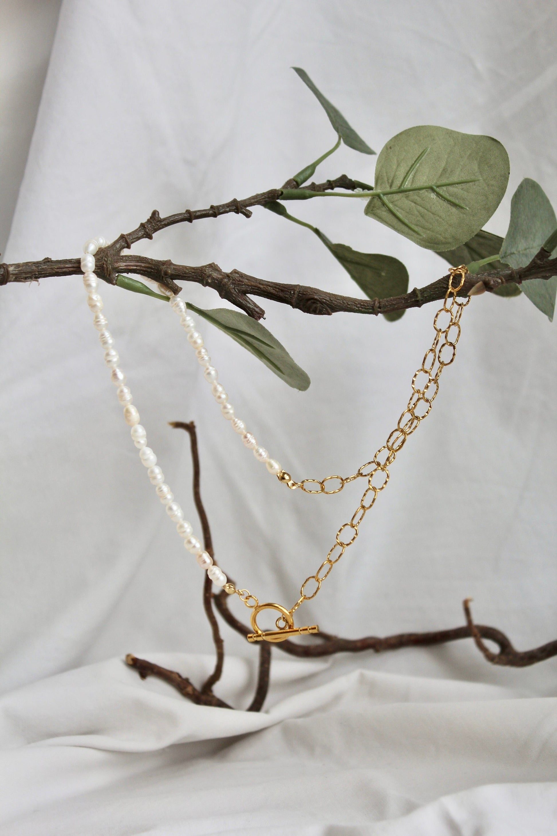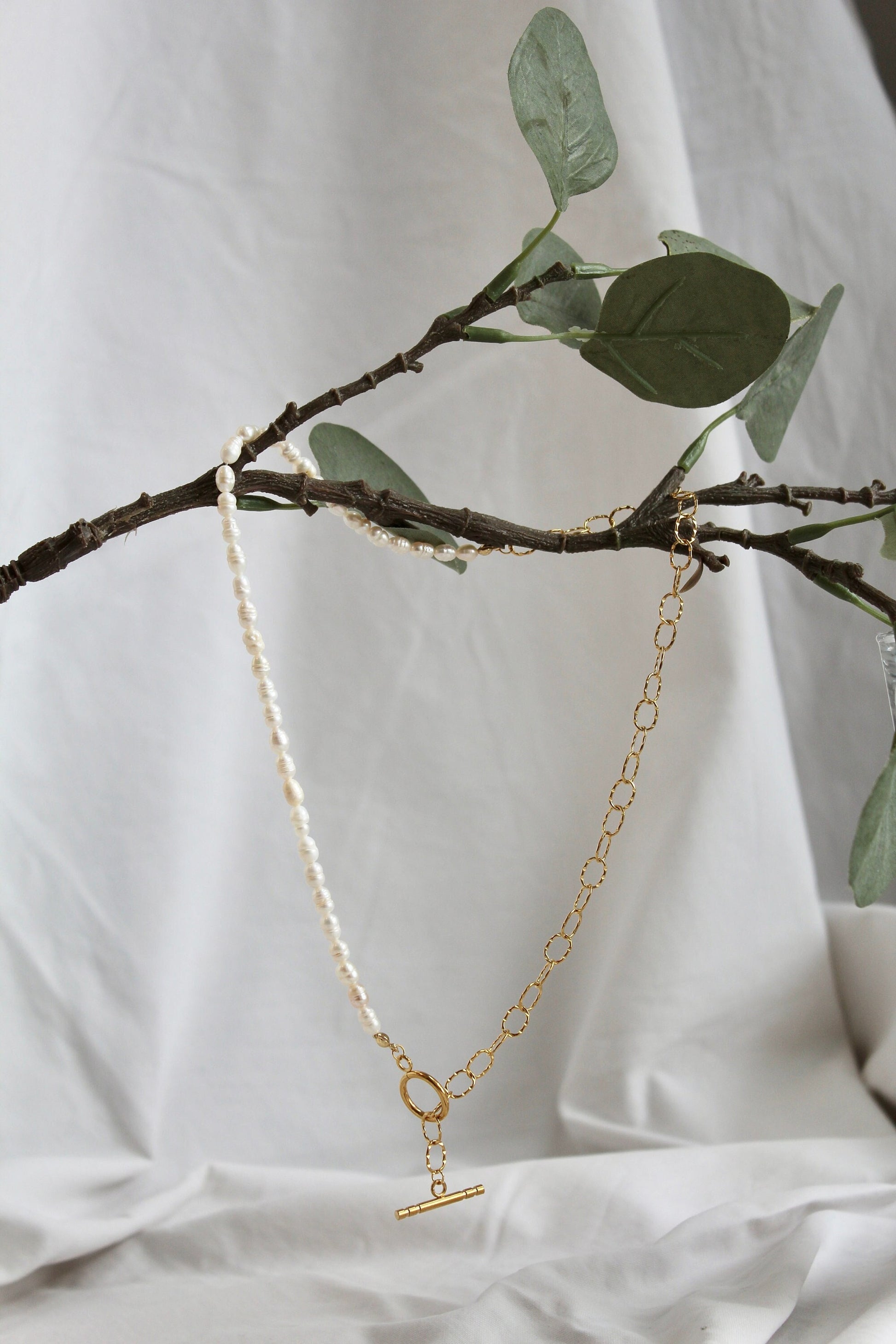 Süßwasser Perlenkette mit Gliederkette in gold