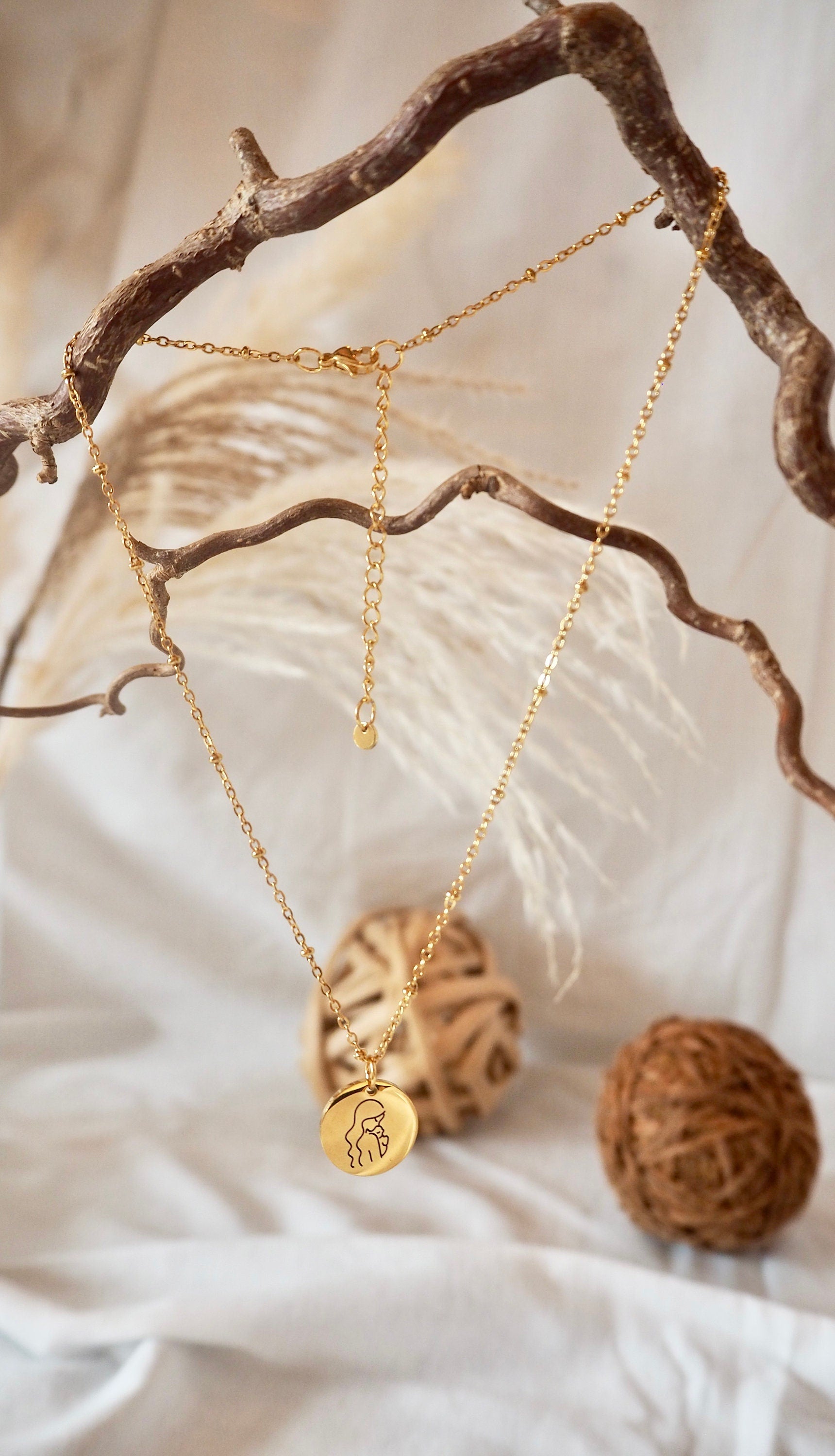 Die Gliederkette in Gold oder Silber ist schlicht und passt zu jedem Outfit. Der Anhänger zeigt eine Mama mit ihrem Kind. Diese Halskette ist das perfekte Geschenk für deine Mama, eine Freundin oder dich selbst und ein echter Hingucker! Die Kette hat eine Gesamtlänge von 40cm + 5cm.