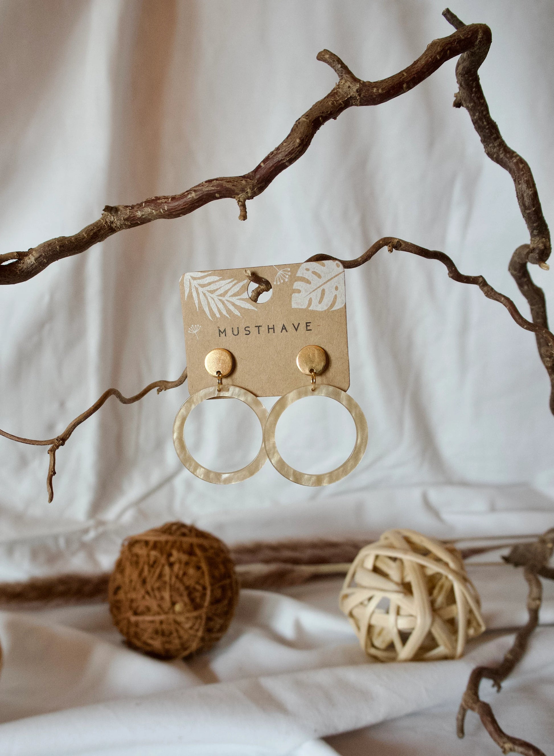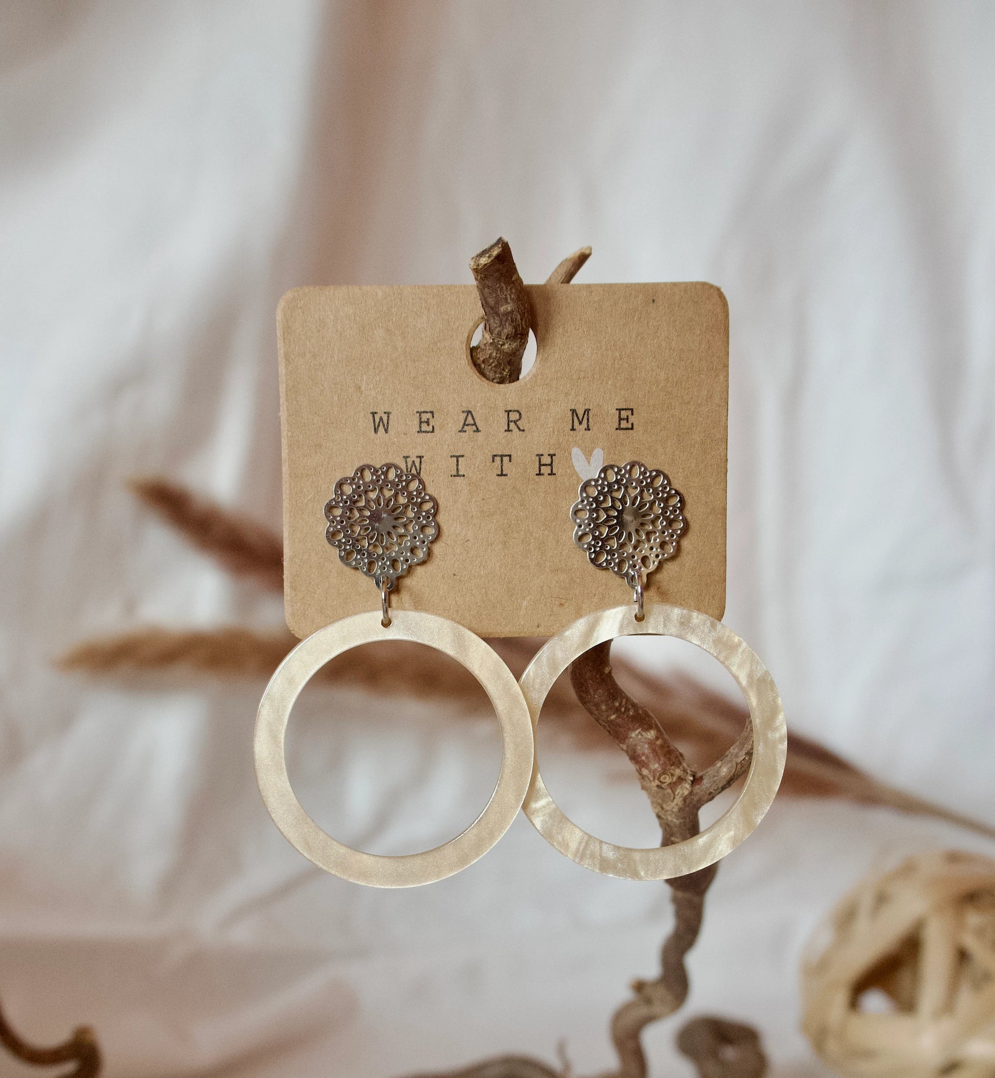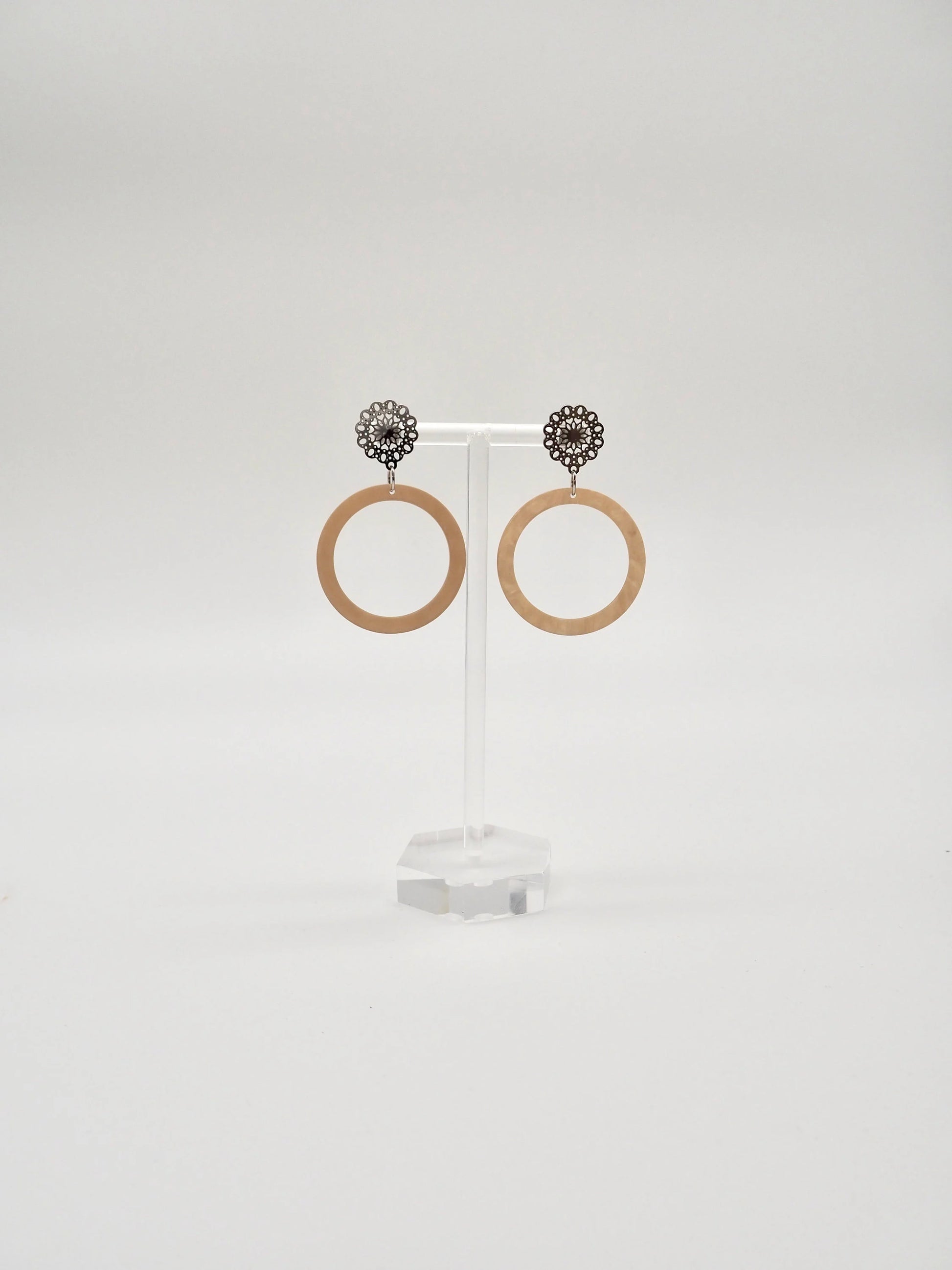 Ohrringe mit Resin-Ornament in beige kreisförmig