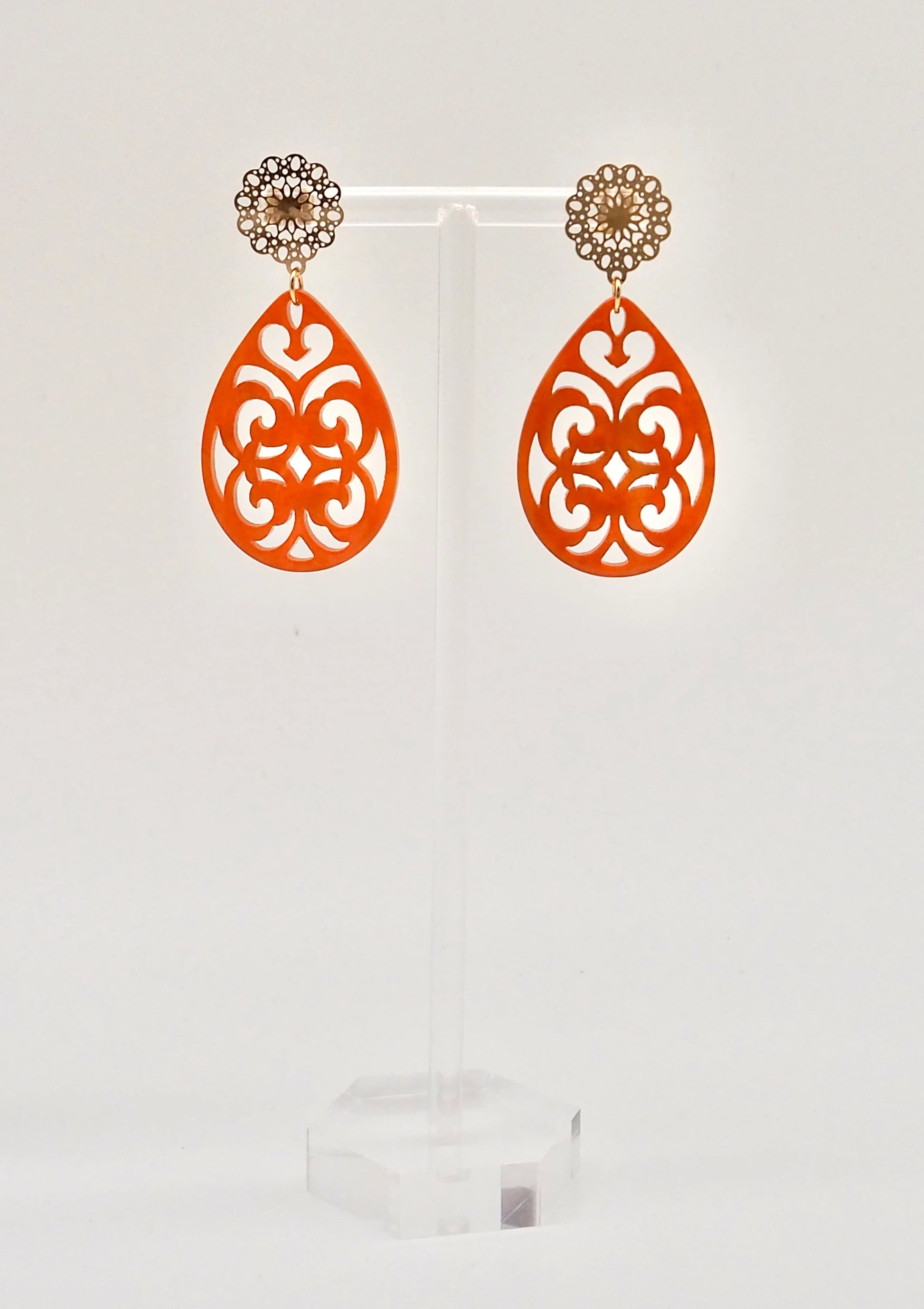 Ohrringe mit Resin-Ornament Tropfen in orange