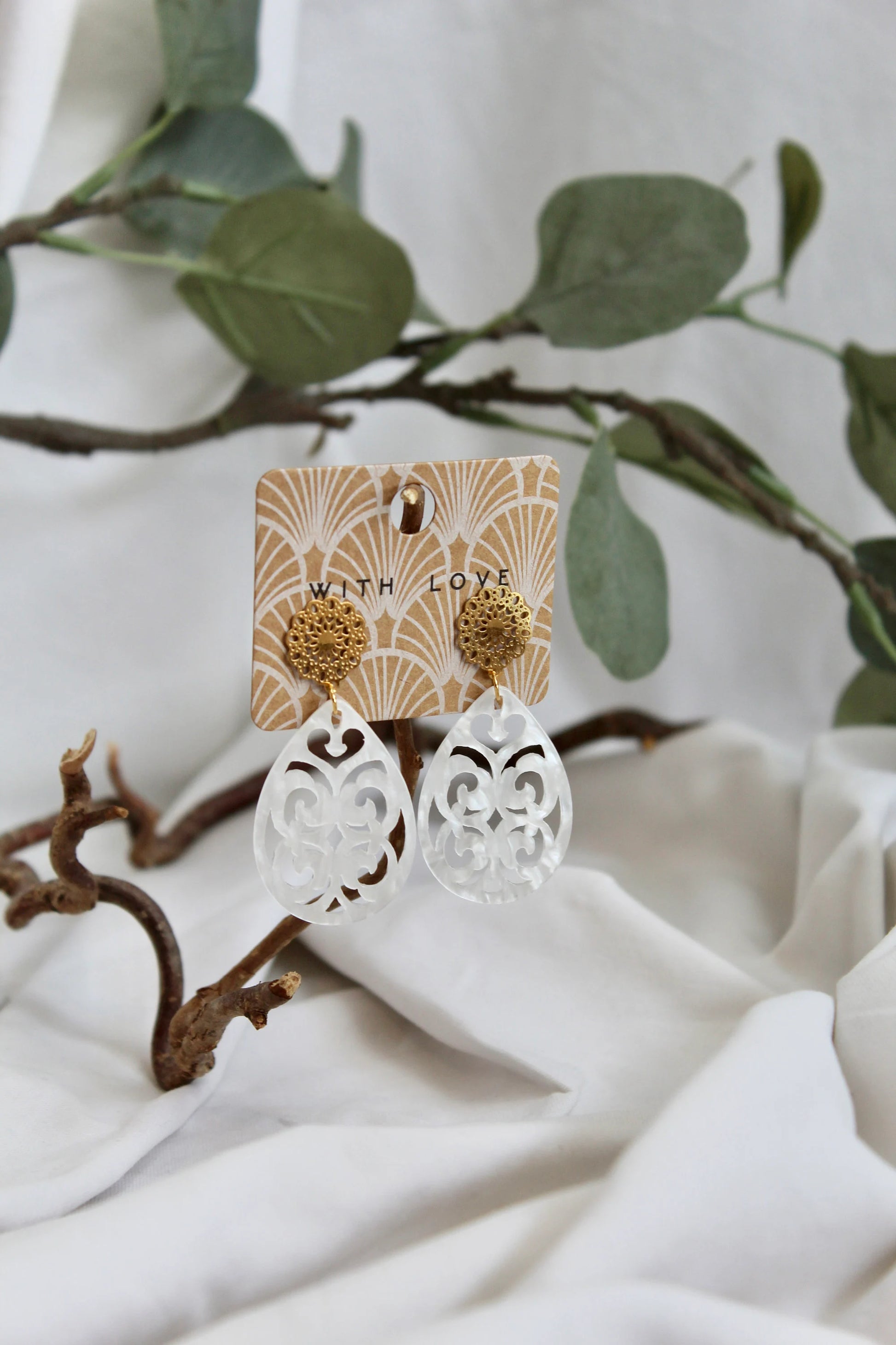 Ohrringe mit Resin-Ornament Tropfen in weiß